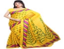 Yellow Print Bhagalpuri Saree by Only Fashion
