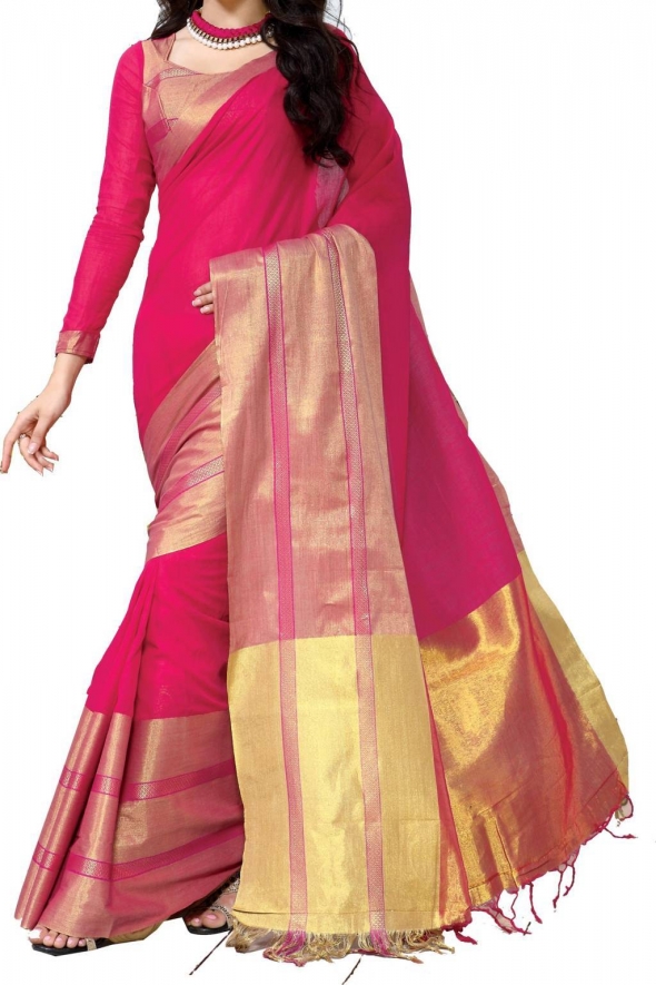 - Product Name: Designer Cotton Silk Ak Rani Saree by Only Fashion