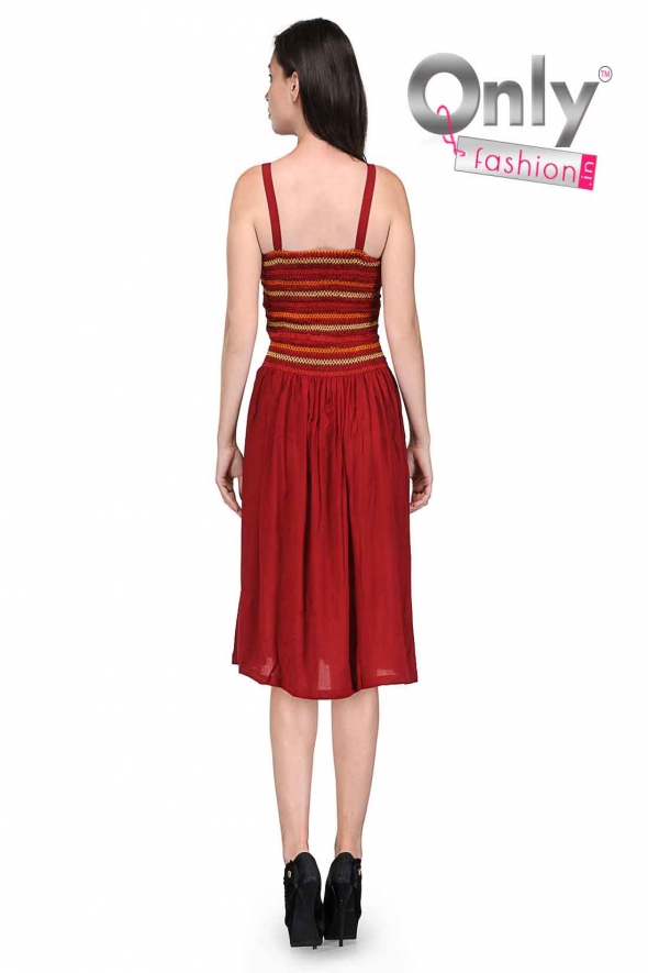 Designer Maroon Color Viscose Dress Midi