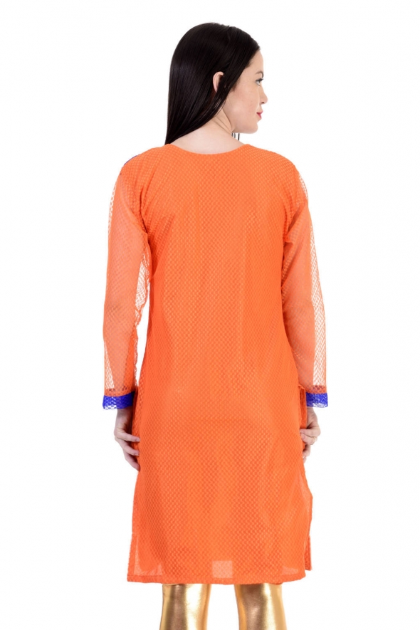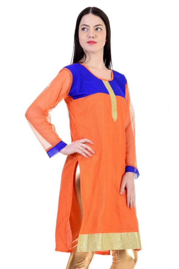 - Product Name: Designer Blue-Orange Net Kurti by Only Fashion