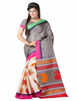JULIE CHOCOLATE BHAGALPURI SILK WITH FOIL PRINT