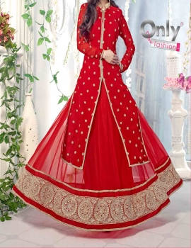 Top Fabric :- jorjet (cut:-2.60 mtr), bottom fabric & inner fabric :- sentoon (cut:-4 mtr), Duppta Fabric:- jecaurd barsoo (cut:-2.25 mtr), Length:- 47+, Color :- Red, Type :- Unstich , Estimated Delivery Time : 6-8 working days