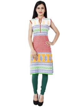 - Designer Red Cotton Kurti