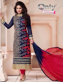 Top Fabric :- jorjet (cut:-3.75 mtr), bottom fabric & inner fabric :- sentton(cut:-4.50 mtr), Duppta Fabric:- chiffon duppta (cut:-2.25 mtr), Length:- 52+, Color :- Navy Blue, Type :- Unstich, Estimated Delivery Time : 6-8 working days