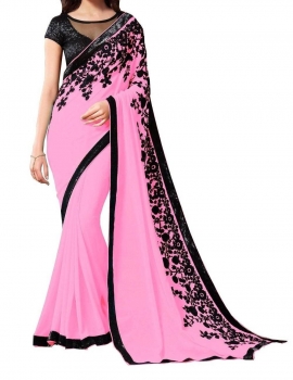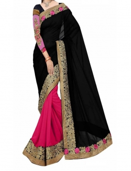 Color :- Black Pink, Size:- Free Size, Type :- Embroidered Saree, Estimated Delivery Time : 6-8 working days
