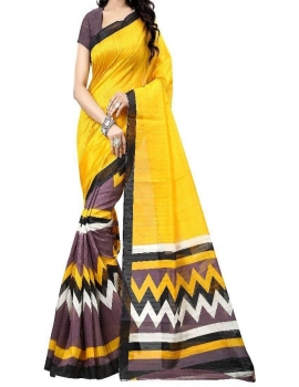 - Buy Designer Printed Yellow Saree by Only Fashion