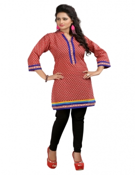 - Designer Multicolor Red Polycoton kurti by Only Fashion