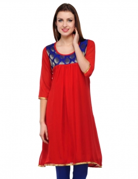 - Designer Red Blue Jacquard Kurti