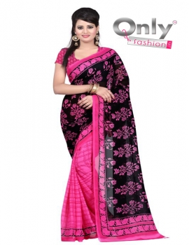 SAREE-5.25 MTR, BLOUSE-0.75 MTR, Top Fabric :- FAUX GEORGETTE, Bottom Fabric :- FAUX GEORGETTE, Color :- Pink - Black, Type :- Printed, Estimated Delivery Time : 6-8 working days