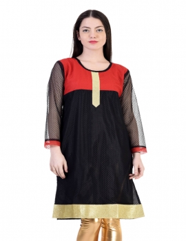 - Designer Blue-Orange Net Kurti by Only Fashion
