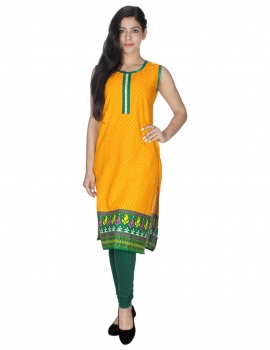 - Designer Green Yellow Cotton kurti by Only Fashion