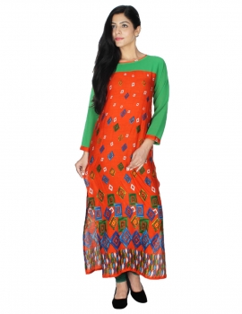 Designer Orange Rayon kurti by Only Fashion