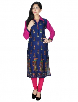 Designer Blue Pink Cotton kurti by Only Fashion