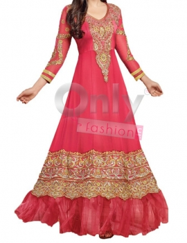 - Designer Pink Long Ghera Gown Salwar Suit