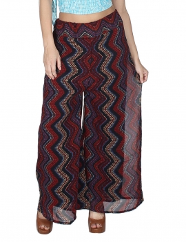 Designer Georgette Maroon Brown Palazzo