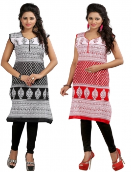 - Designer Black-Red Crepe Pack of 2 kurti by Only Fashion