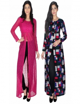 Designer Pink-Multicolor Net-Georgette Pack of 2 kurti