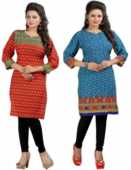 - Designer Multicolor-Blue Crepe Pack of 2 kurti by Only Fashion