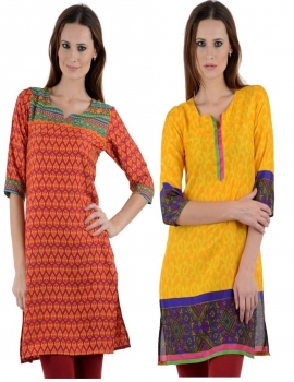 - Designer Multicolor-Yellow Crepe Pack of 2 kurti by Only Fashion