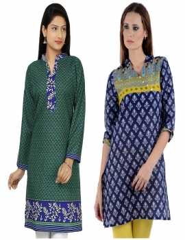 - Designer Green-Blue Crepe Pack of 2 kurti by Only Fashion