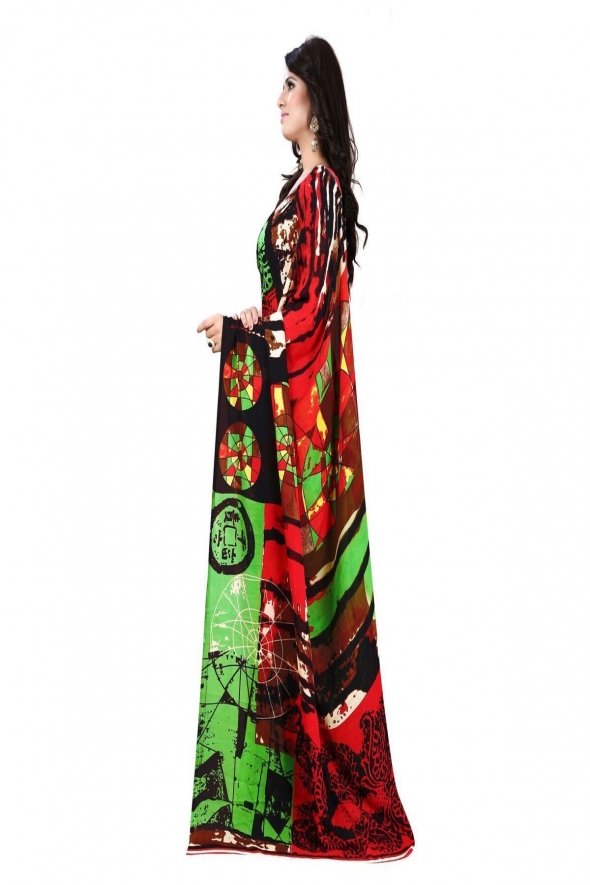 Top Fabric :- Premium Georgette, Color :- Multicolor, Saree :- 5.50 MTR, Blouse:- 0.80 MTR, Type :- Printed Saree, Estimated Delivery Time : 6-8 working days