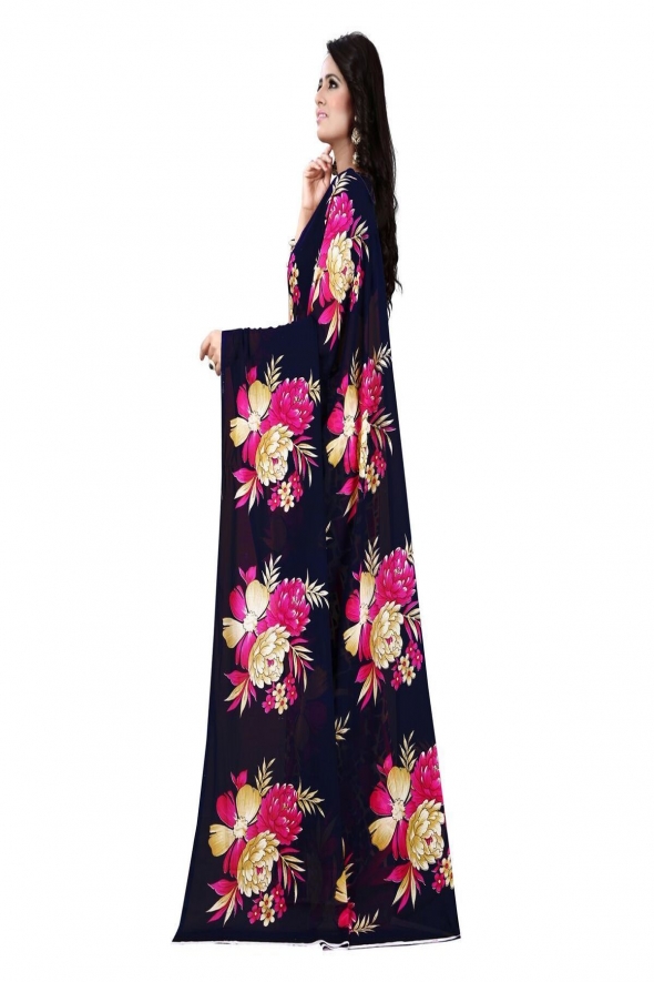 - Product Name: Designer Navy Flower Saree by Only Fashion