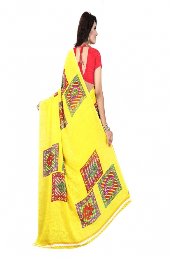 Top Fabric :- Premium Georgette, Color :- Yellow, Saree :- 5.50 MTR, Blouse:- 0.80 MTR, Type :- Printed Saree, Estimated Delivery Time : 6-8 working days