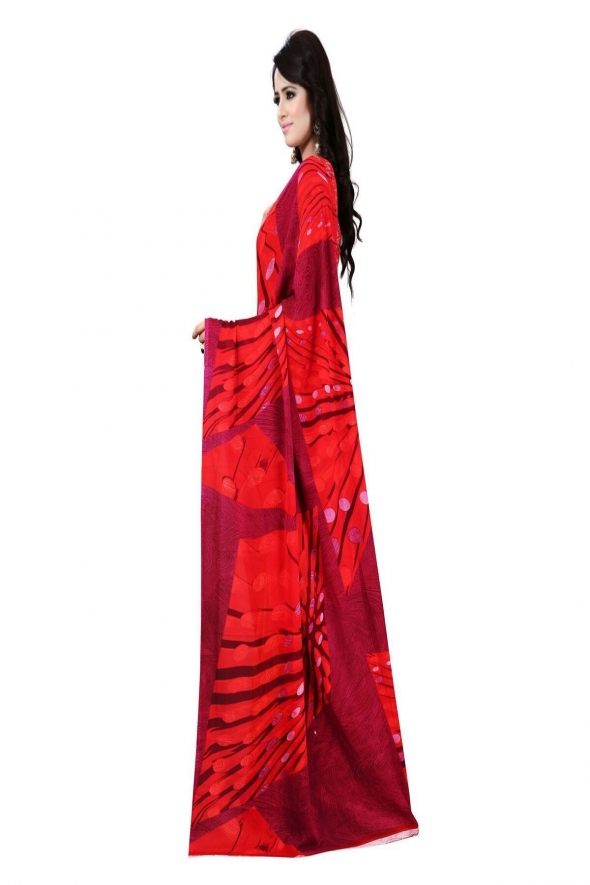 Top Fabric :- Premium Georgette, Color :- Red, Saree :- 5.50 MTR, Blouse:- 0.80 MTR, Type :- Printed Saree, Estimated Delivery Time : 6-8 working days