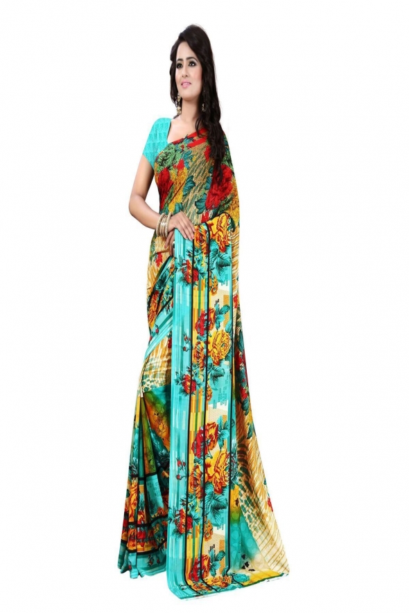 Top Fabric :- Premium Georgette, Color :- Multicolor, Saree :- 5.50 MTR, Blouse:- 0.80 MTR, Type :- Printed Saree, Estimated Delivery Time : 6-8 working days