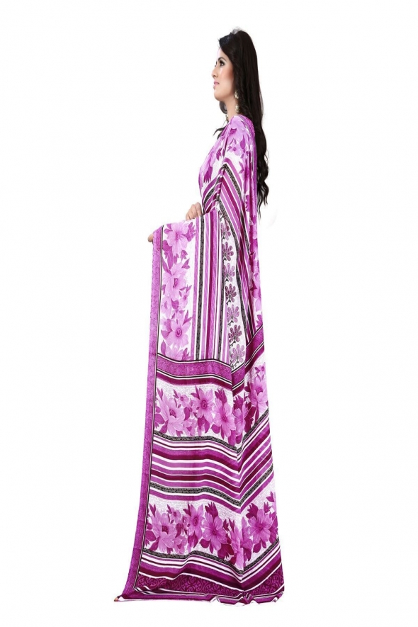 Top Fabric :- Premium Georgette, Color :- White Pink, Saree :- 5.50 MTR, Blouse:- 0.80 MTR, Type :- Printed Saree, Estimated Delivery Time : 6-8 working days