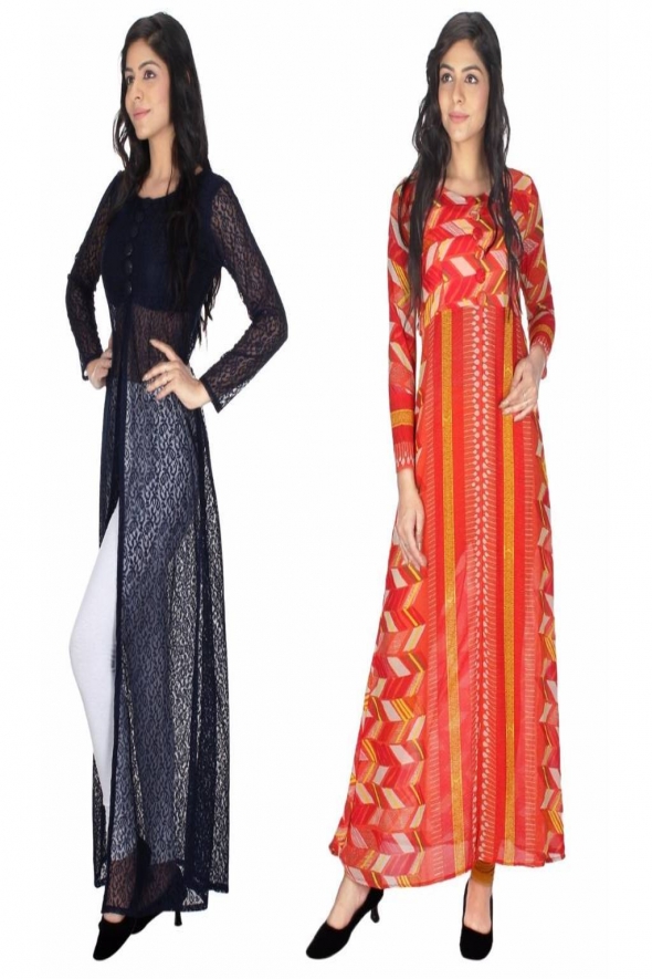 - Product Name: Designer Blue-Orange Net-Georgette Pack of 2 kurti