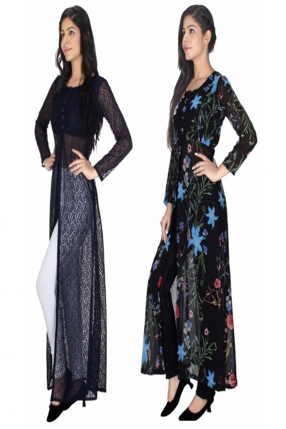 Designer Blue-Sky Net-Georgette Pack of 2 kurti