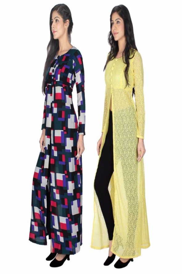 - Product Name: Designer Multicolor-Lemon Georgette Net Pack of 2 kurti
