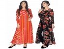- Product Name: Designer Orange-Red Black Georgette Pack of 2 kurti