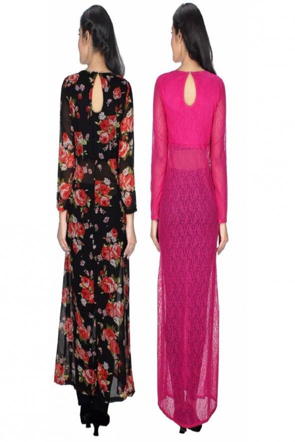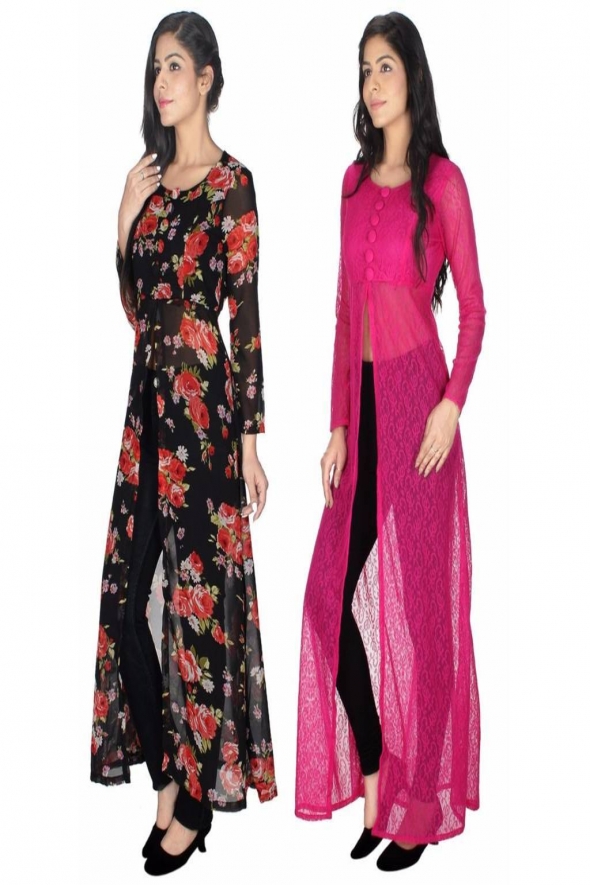- Product Name: Designer Red Black-Pink Georgette Net Pack of 2 kurti