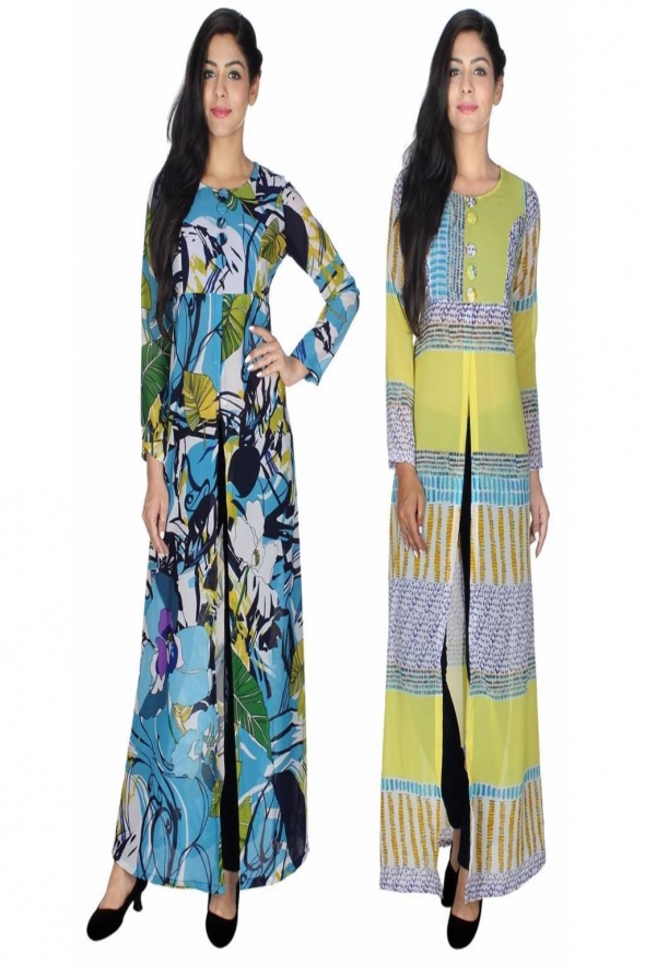 - Product Name: Designer Firozi - Lemon Black Georgette Pack of 2 kurti