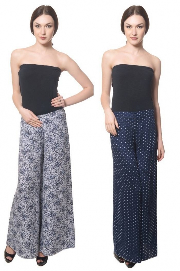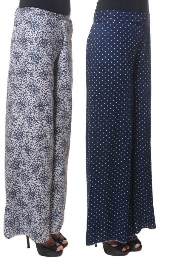 Top Fabric :- Crepe-Rayon, Color :- Grey-Dark Blue, Size:- S, M, L, XL, Type :- Combo Palazzo 2, Estimated Delivery Time : 6-8 working days