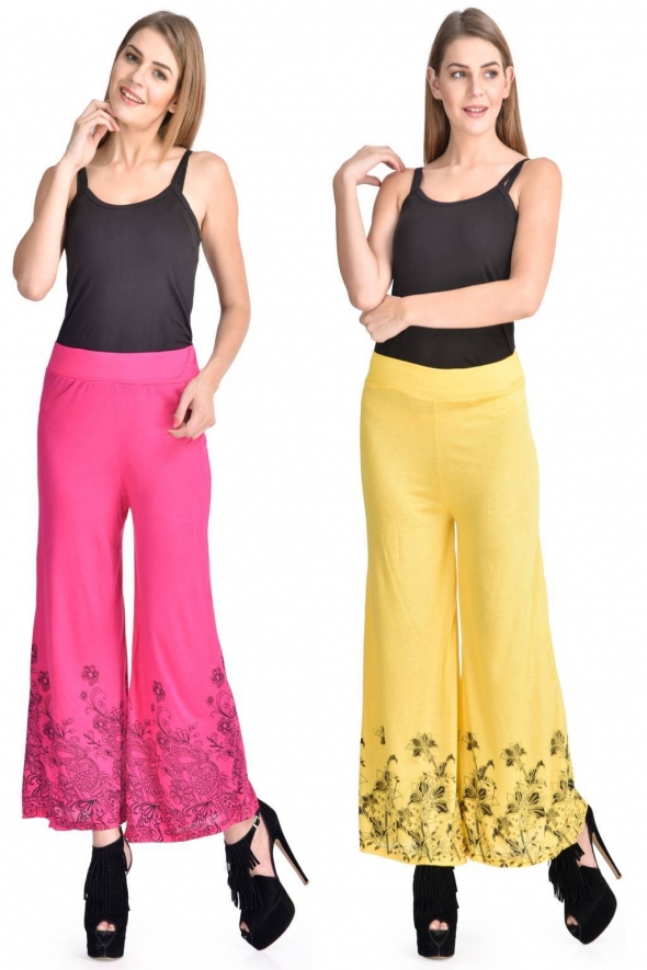 Top Fabric :- Viscose, Color :- Pink-Yellow, Size:- S, M, L, XL, Type :- Combo Palazzo 2, Estimated Delivery Time : 6-8 working days