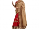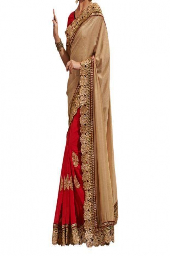 Designer Bullet Chiku Golden Red Embroidered Saree