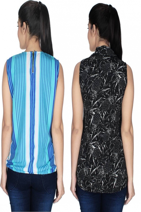 Top Fabric :- American Crepe, Color :- Sky Blue-Black, Size:- S, M, L, XL, Type :- Tops, Estimated Delivery Time : 6-8 working days