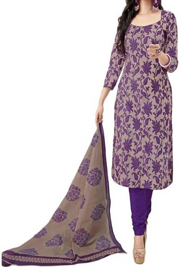 Top Fabric :- Polycoton, Color :- Purple, Size:- TOP-2.30 , BOTTOM-2.10 , DUPATTA-2.10, Type :- Dress Material, Estimated Delivery Time : 6-8 working days