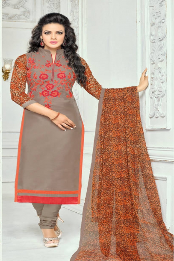 Top Fabric :- cotton chanderi (cut:-2.10 mtr), Sleev Fabric- cotton chanderi (cut:-.50 mtr), Bottom Fabric:- cotton (cut:-2.20 mtr), Duppta Fabric:- naznin mil print (cut:-2.20 mtr), Length:- 48+, Color :- Dark Chiku, Type :- Unstich, Estimated Delivery Time : 6-8 working days
