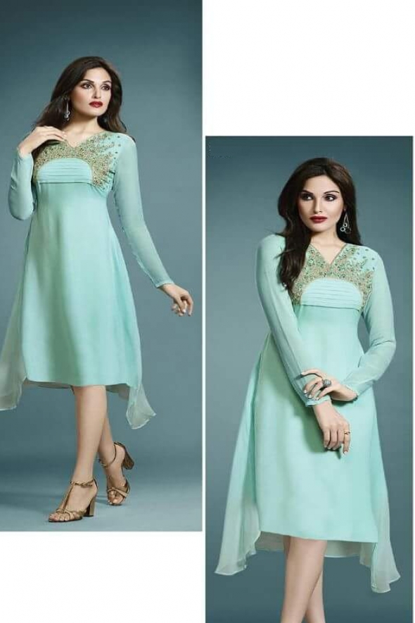 Top Fabric :- hevay jorjet (cut:-3 mtr), inner fabric :- sentoon (cut:-1.50 mtr), Size:- XL, Bust(Inch):- 40 inch, Length:-47+ Color :- Turq, Type :- Unstich, Estimated Delivery Time : 6-8 working days