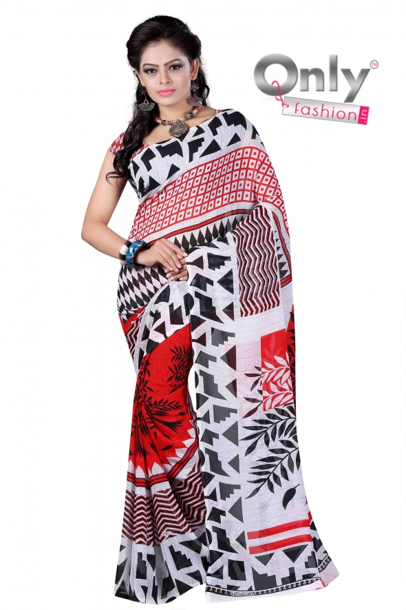 SAREE-5.25 MTR, BLOUSE-0.75 MTR, Top Fabric :- FAUX GEORGETTE, Bottom Fabric :- FAUX GEORGETTE, Color :- Red, Type :- Printed, Estimated Delivery Time : 6-8 working days
