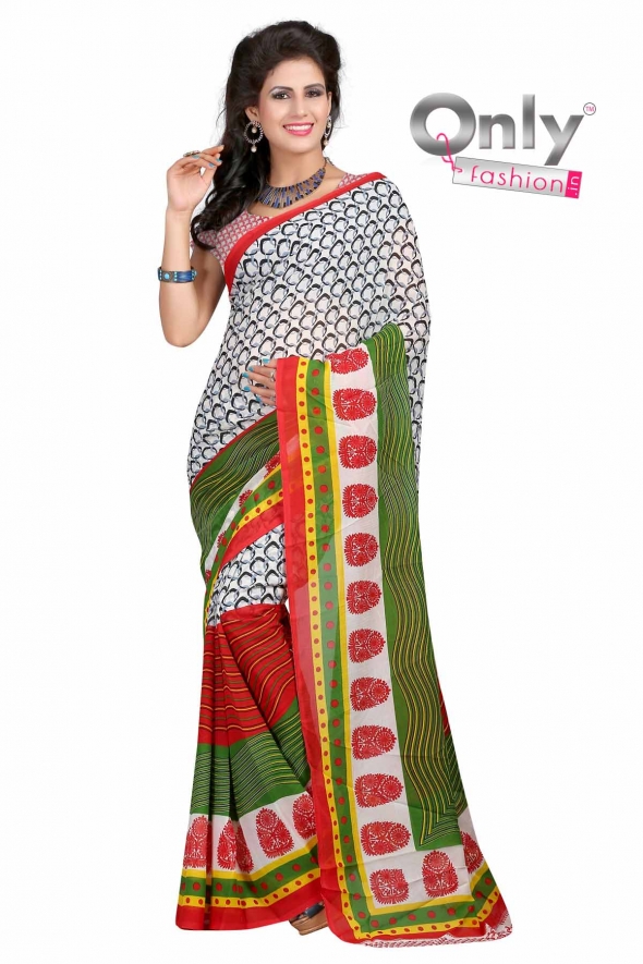 SAREE-5.25 MTR, BLOUSE-0.75 MTR, Top Fabric :- FAUX GEORGETTE, Bottom Fabric :- FAUX GEORGETTE, Color :- Multicolor, Type :- Printed, Estimated Delivery Time : 6-8 working days