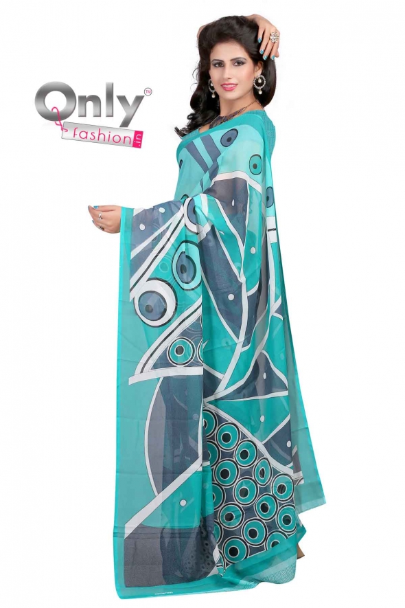 SAREE-5.25 MTR, BLOUSE-0.75 MTR, Top Fabric :- FAUX GEORGETTE, Bottom Fabric :- FAUX GEORGETTE, Color :- Blue, Type :- Printed, Estimated Delivery Time : 6-8 working days