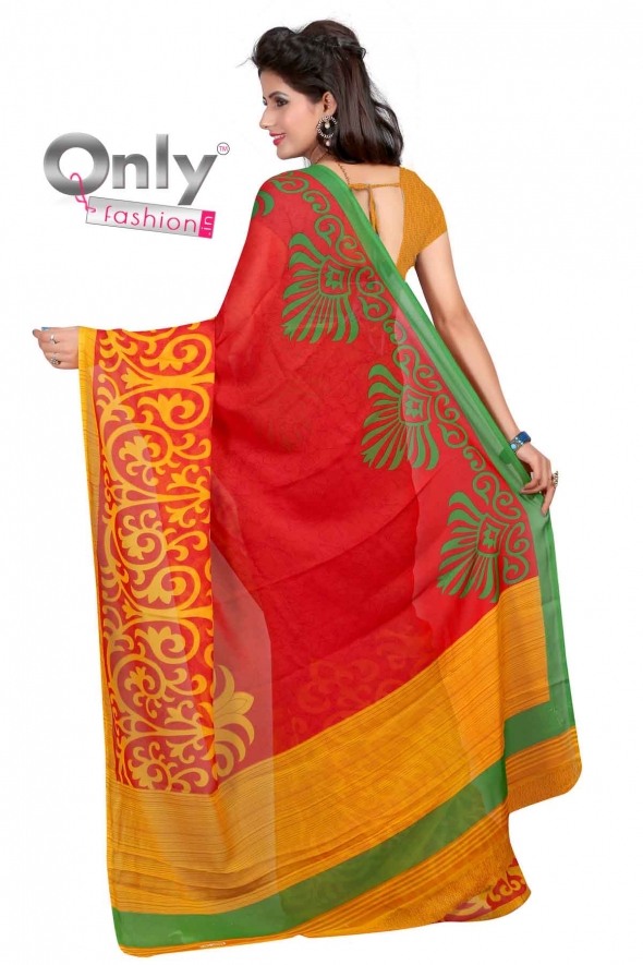 SAREE-5.25 MTR, BLOUSE-0.75 MTR, Top Fabric :- FAUX GEORGETTE, Bottom Fabric :- FAUX GEORGETTE, Color :- Red, Type :- Printed, Estimated Delivery Time : 6-8 working days