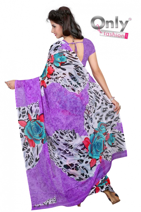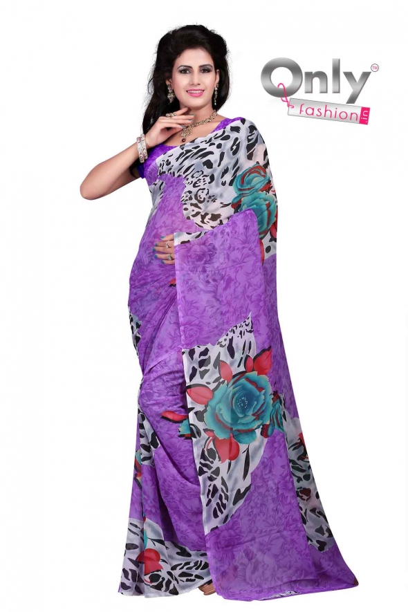 SAREE-5.25 MTR, BLOUSE-0.75 MTR, Top Fabric :- FAUX GEORGETTE, Bottom Fabric :- FAUX GEORGETTE, Color :- Purple, Type :- Printed, Estimated Delivery Time : 6-8 working days