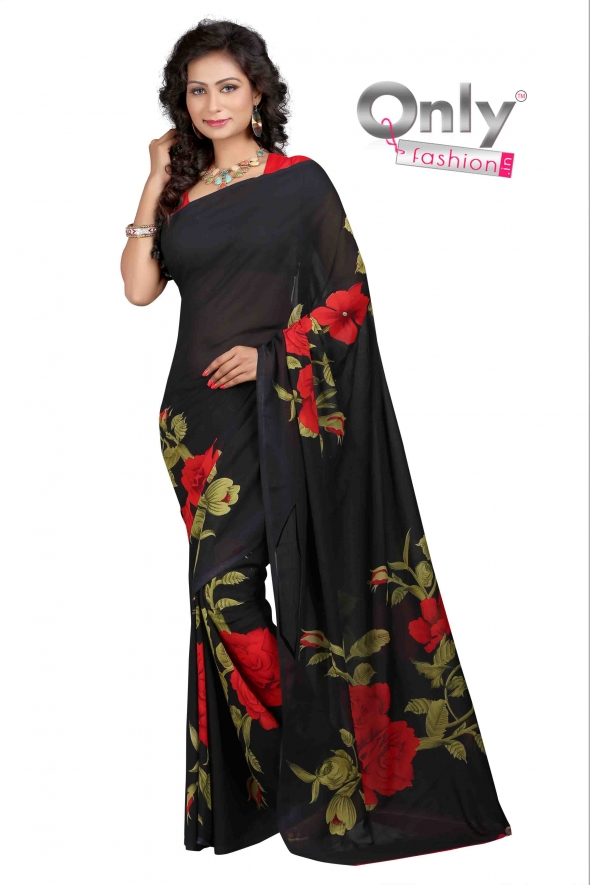 SAREE-5.50 MTR, BLOUSE-0.80 MTR, Top Fabric :- PREMIUM GEORGETTE, Bottom Fabric :- PREMIUM GEORGETTE, Color :- Black, Type :- Printed, Estimated Delivery Time : 6-8 working days