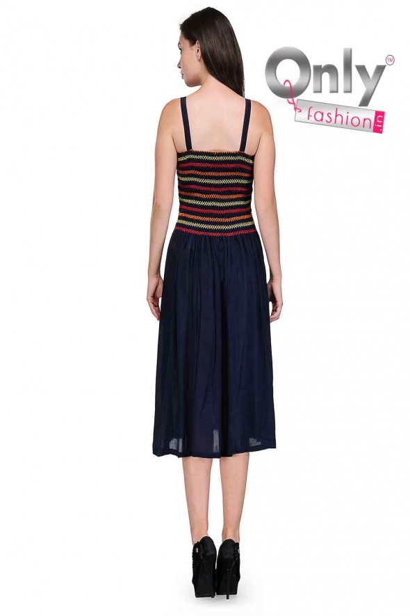 Designer Navy Blue Color Viscose Dress Midi